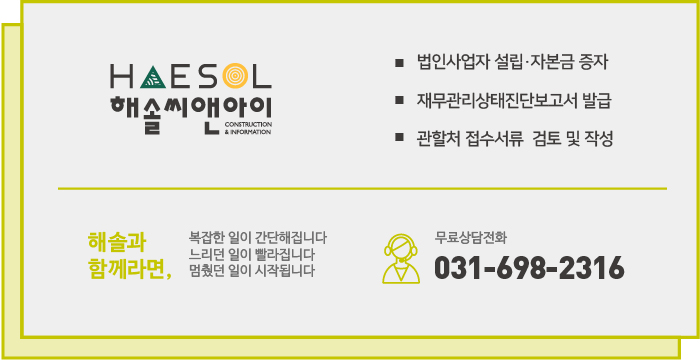 면허의 등록 준비에 대한 더 자세한 내용 및 도움이 필요하신 경우, 건설면허 전문가 해솔씨앤아이로 문의 주세요!