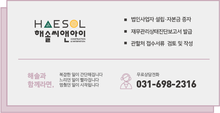 자본금 준비 완료 후에는 회사의 재무제표를 바탕으로 한 건설업 기업진단의 진행과 자본금 보유 적격판정을 받은 기업진단보고서의 발급을 진행 해 주셔야 합니다.