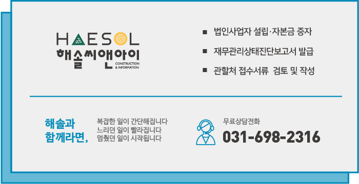 자본금 준비 후에는 재무제표가 바탕이 된 건설업 기업진단의 진행 및 기업진단보고서의 발급이 이루어져야 합니다.