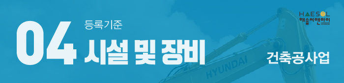 등록기준 요건 중 하나라도 갖추지 못할 경우 면허 취득이 절대 불가한 점 유의하시기 바라며, 등록 준비 과정에 있어 더 자세한 안내나 준비의 도움이 필요하시다면 건설면허 전문가 해솔씨앤아이로 연락주시면 상세 도움 드리도록 하겠습니다.