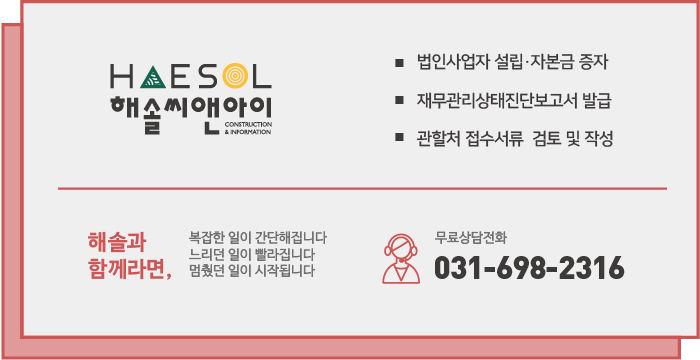면허 취득을 준비하시며 더 자세한 안내나 도움이 필요하신 경우, 건설면허 전문가 해솔씨앤아이로 문의주시면 귀사의 원활한 면허 취득을 위한 최적의 솔루션을 제공해드리겠습니다.