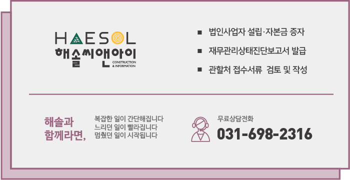 면허 등록에 있어 더 자세한 안내 및 도움이 필요하신 경우, 건설면허 전문가 해솔씨앤아이로 문의주시기 바랍니다.