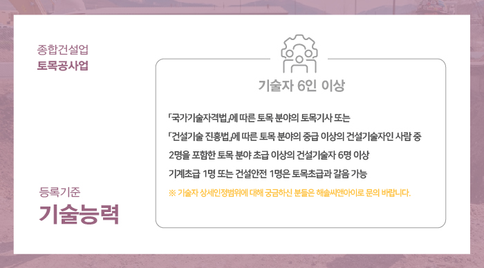기술자는 위 이미지에 안내 된 자격요건을 갖춘 분들로써 총 6인 이상을 준비해야 합니다.