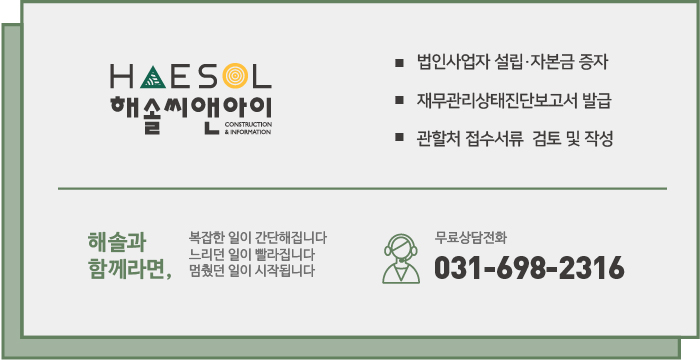 면허 등록에 관한 더 자세한 안내 및 도움이 필요하신 경우, 건설면허 전문가 해솔씨앤아이로 문의 주세요!