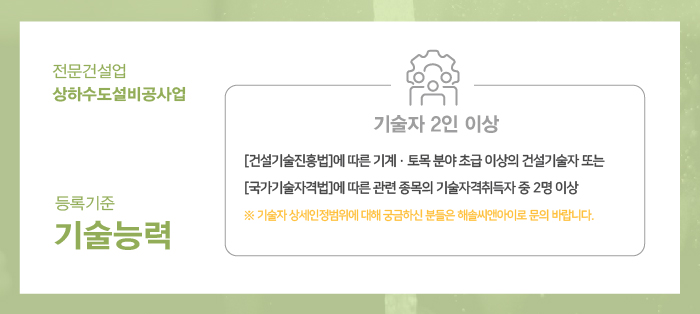 상하수도설비공사업 면허 등록기준 첫번째!