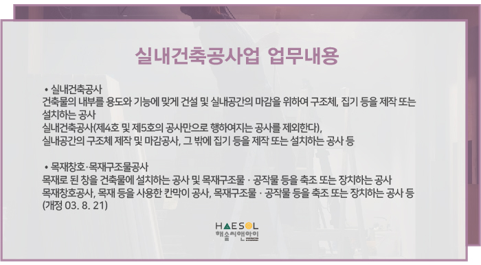 오늘은 실내건축공사업 면허 등록을 위한 가이드! 등록기준에 대해 알아보겠습니다.