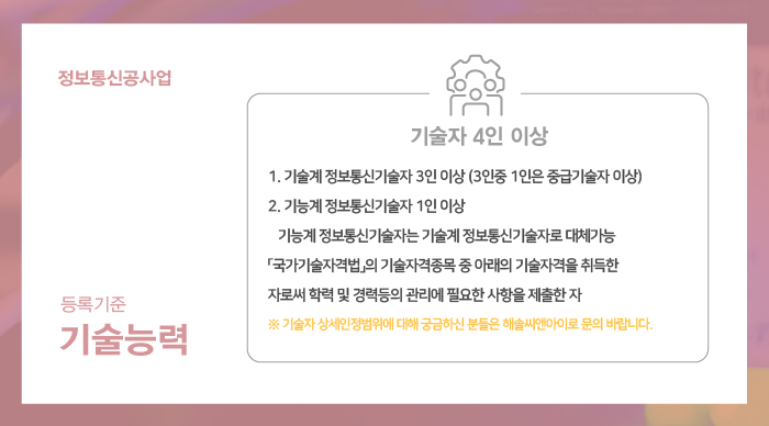 1. 기술계 정보통신기술자 3인 이상(3인 중 1인은 중급 이상)