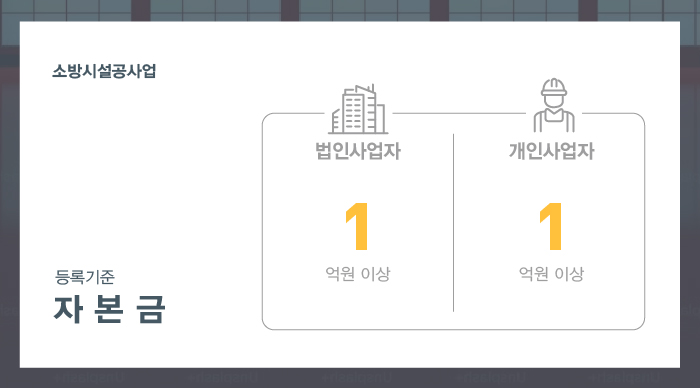 먼저 소방시설공사 운영을 목적으로 한 실질자본금 1억원 이상을 준비해주셔야 합니다.