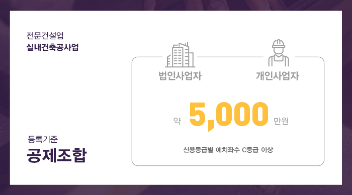 전문건설공제조합을 통해 이를 준비하시는 것이 일반적이며, 약 5,000만원 가량의 출자금 예치 및 보증가능금액확인서 발급을 진행하여 주시면 됩니다.